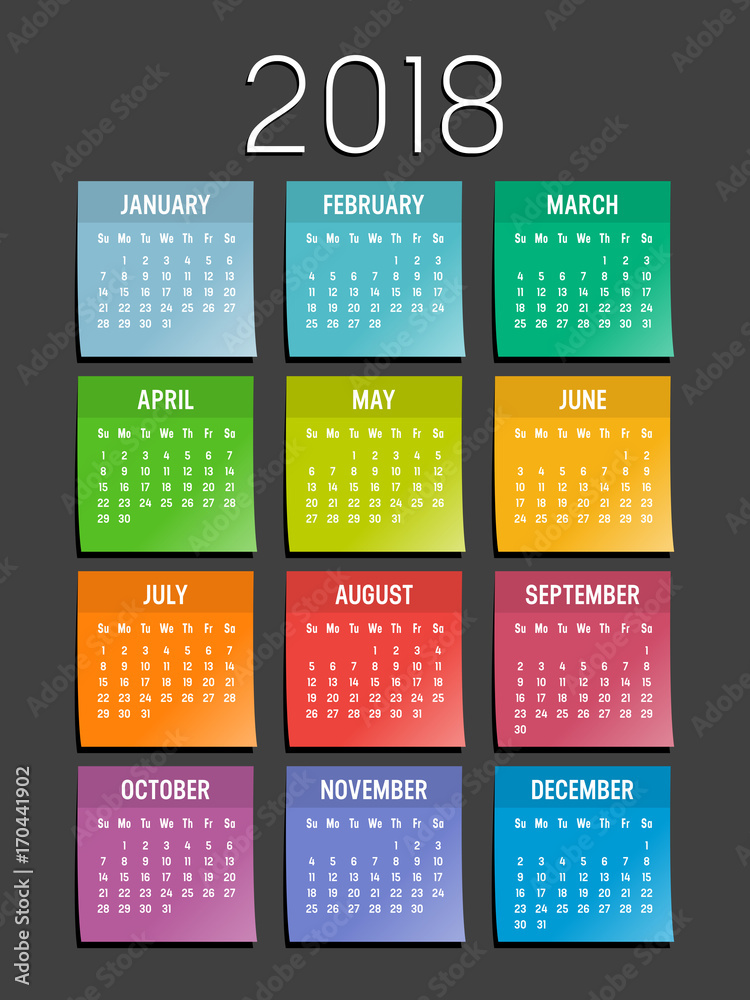 Year 2018 sticky notes calendar Stock Vector | Adobe Stock